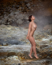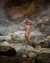 Arriving at 5:00 AM under the Midnight Sun in June 2025, Anastasia Arteyeva and I had the whole Geothermal fields to ourselves with its varied hues of minerals, bubbling mud and steam rising from small geysers. Anastasia created a beautiful mood with Greek Goddess statuesque fashion poses and incredible art nudes among the mists and rocks. Just like clockwork, at 7:00 AM the first tourists arrived and the magic ended.